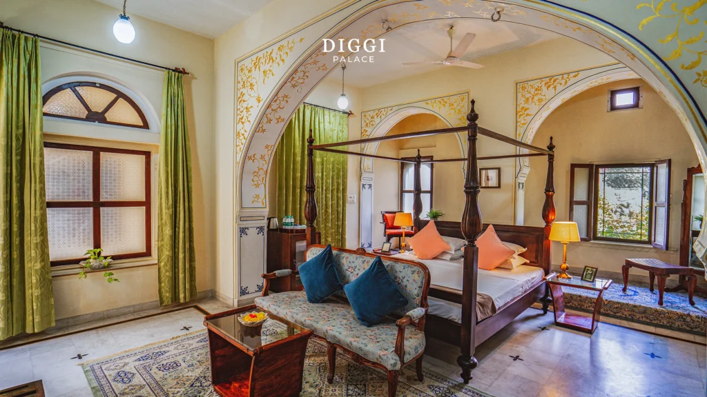 The Timeless Elegance of Diggi Palace: A Heritage Hotel in Jaipur Rajasthan is known for its palaces, forts, monuments, and havelis. Heritage hotels promote tourism, as people exploring the city will get a complete go-through of a life filled with culture and traditions. The basic feature of a heritage hotel is to deliver the authentic recollection of living styles of the royals and the preserved culture and their legacy. A heritage hospitality offers crafts, customs, cuisine, folk music, and dance to its guests and promotes the local culture and craftsmanship. One such heritage palace is situated in Rajasthan, which will furnish you with the culture and royal experience of the state. Nestled in the heart of Jaipur, the Diggi Palace is a living heritage hotel offering royal hospitality to its guests. The palace is an architectural masterpiece that was built in the 1860s and offers the history and ancient stories of the centuries after its establishment. The iconic structure offers nothing but the intricate designs and ornate style of architecture with a mixture of traditional values and modernity. The courtyards, arches, frescoes, decor, and portraits of the royal family in the palace showcase the living style of the royals and provide an authentic experience of the culture of the Pink City. We call it living as the members of the Diggi family still reside in a part of the palace, and the other part has been transformed into a heritage hotel. In this blog, we will get to know about the history of Diggi Palace and the highlights of this heritage hospitality. Table of contents History of Diggi Palace The Diggi Palace, built in the 19th century, was the city residence of the Thakurs of Diggi, from the Rajput family of the Khangarot clan. The palace showcases ornate and intricate styles of architecture. In the late 20th century, a prominent part of the palace was converted into a heritage hotel by Thakur Ram Pratap Singh Diggi. The rest of the palace is still used by the members of the Diggi family as their residence. The hospitality is a wonderful mixture of Rajput and Mughal architecture with a touch of European elements. The detailed courtyards, delicate jharokhas, and cenotaphs, or “chhatris,” portray the Rajput style of architecture. Whereas, the imperial doorways, royal frescoes, and lush green gardens highlight the influences of Mughal architecture from their reign. Enhancing the beauty of the palace, it has touches of some European elements such as verandas, iron detailing, and high ceilings from the British era. The maintenance of the palace and its elements is quite essential for preserving the heritage of the palace and helping the guests to build an authentic connection with the culture and heritage of the hotel. Keeping this in mind, the Diggi Palace has preserved every element of its property, such as the frescoes, courtyards, and jharokhas. The Rajput decor and the crafts, the significant elements of the palace, have been given attention to detail to give you the best royal experience of the Rajasthani culture. Architectural Highlights The Diggi Palace is a magnificent piece of architecture as it offers a fusion of elements from Rajput, Mughal, and European architecture. This 19th-century marvel starts with an opulent and regal facade and moves into the palace. The palace is composed with symmetry, proportion, and ornamentation in each corner. It was designed as a residence for the Diggi family, which gives it the warmth and welcoming energy, staying here feels like living in a noble home. The courtyards of the palace have different vibes and aesthetics. Each and every courtyard is distant from each other. The entrance and the gateways are designed with ornate designs and styles, walking by them feels like walking through history.The entire Palace Hotel gives a serene ambience and fantastic architectural designs. Each and every element of architectural detailing demonstrates the local craftsmanship and their skills. Every part of the property is made with different themes dedicated to each corner. The stone carvings on the balconies, archways, and pillars and the intricate wooden carvings in its interiors show the delicate work of the artisans and their talent. The antique decor gives the palace an authentic feel, like the chandeliers, hand paintings, textiles, portraits, and photographs of the royal family. The hospitality has been maintained and preserved by the Diggi family to retain its authentic and architectural value. The palace was established by the Rajputs, who gave the palace a bold and grand aesthetic and afterwards got influenced by the Mughal architecture styles, which presented the palace with softer and ornate designs with a touch of elegance, regalness, and serene nature. Whereas the European elements such as verandas and high ceilings were infused into the palace in the British era. Experience the Royal Hospitality To soak in the spirit of Rajasthan, you should definitely stay at the Diggi Palace. You will witness heritage with aesthetics, culture with elegance, and traditional values with modernity. The heritage hotel offers welcoming vibes as soon as you enter the property, with marigold garlands and a traditional greeting of Rajasthan. The staff is really hospitable and eager to help you with anything you require during your stay with them. The hospitality is filled with the warmth of the home-style cuisines and is rich in culture and tranquilizing traditions. The palace gives out such royal yet inviting vibes, and so do its rooms. Each and every room offers different feels and has its own unique design. The elements of every room are distinctive and antique, which makes your experience on your stay rare, as no one else will be able to live through that experience. The rooms provide modern-day comfort with heritage interiors. The suite has free wifi, a comfortable bed, air conditioning, and an ensuite bathroom to enjoy a convenient stay. Whereas antiqu